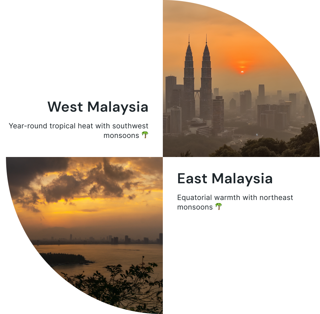 Malaysia enjoys a warm, tropical climate throughout the year, with temperatures typically ranging between 25°C and 32°C. Sunshine and humidity are constant companions, making it perfect for beach getaways and city explorations any time. From December to March, the weather is generally drier on the west coast ideal for island hopping and outdoor adventures while May to September brings the best conditions for exploring the east coast’s stunning islands and vibrant marine life. Occasional tropical showers refresh the landscapes, adding to the country’s lush, green beauty.