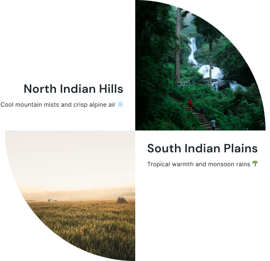 India experiences a remarkable diversity of climates across its vast landscape, offering something unique in every season. Generally, temperatures range from a pleasant 20 °C in the northern hill stations to around 35 °C in the southern plains. From October to March, most regions enjoy cool, dry weather—perfect for sightseeing, wildlife safaris, and cultural tours. April to June brings warmer days ideal for exploring the Himalayan retreats or coastal escapes, while July to September is monsoon season, when lush greenery and vibrant festivals make the countryside come alive.